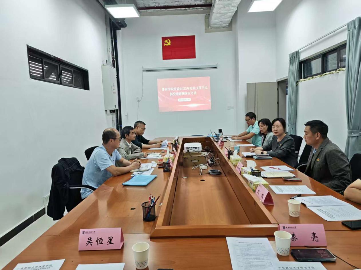 2026年3月17日,广东财经大学体育学院党委在体育馆117室召开2025年度党支部书记抓党建述职评议考核会议。学校党建督导四组杨长春、苏晓冠、方继勇到会指导,学院党委委员、正处级组织员及各党支部书记参加会议,会议由学院党委书记郑田主持。
